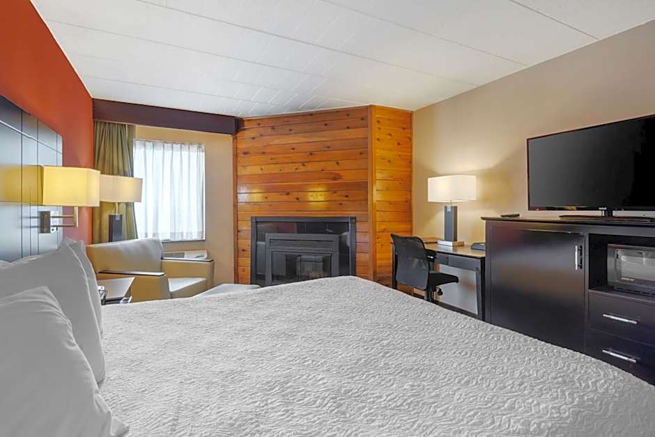 Room choices span from King Rooms and Deluxe Studios to more indulgent suites. Highlights include a King Room with Fireplace and Whirlpool, a King Room with a Fireplace, a Suite with Sofa Bed and Jetted Tub, and other options like a Jacuzzi King room and a Deluxe Studio.