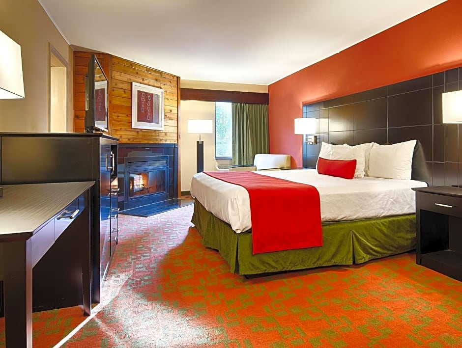 Room choices span from King Rooms and Deluxe Studios to more indulgent suites. Highlights include a King Room with Fireplace and Whirlpool, a King Room with a Fireplace, a Suite with Sofa Bed and Jetted Tub, and other options like a Jacuzzi King room and a Deluxe Studio.